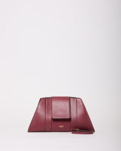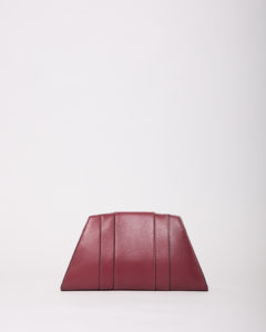 Compatta, architettonica, essenziale, è una borsa che definisce il look con discrezione. Il colore profondo dialoga con la luce calda della sera, mentre la pelle liscia restituisce una sensazione di pulizia e continuità, senza mai risultare rigida.