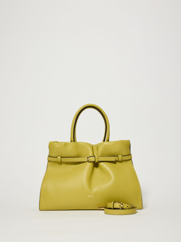 Lilia è una reinterpretazione del nostro best seller, la Lucille, arricchita con un elegante cinturino che si avvolge e si chiude frontalmente con una raffinata fibbia. Questo dettaglio aggiunge un tocco di lusso e sofisticatezza a un design senza tempo. È un accessorio che unisce funzionalità e stile, ideale per ogni occasione.
