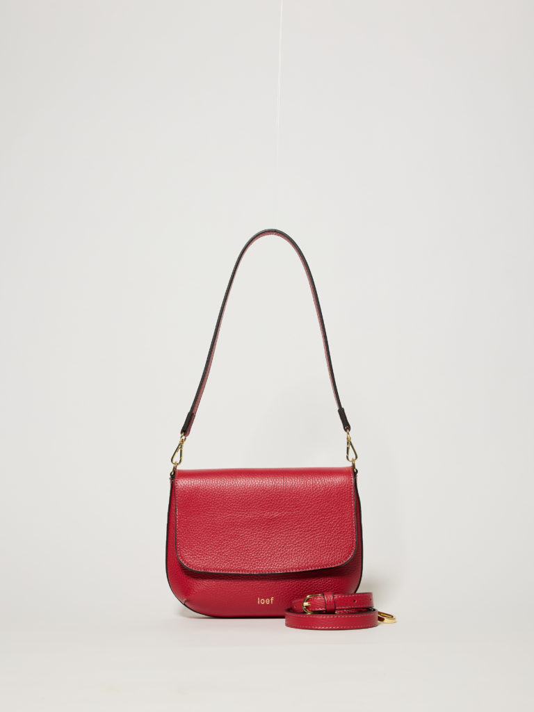 Borsa a spalla o tracolla in pelle martellata amaranto